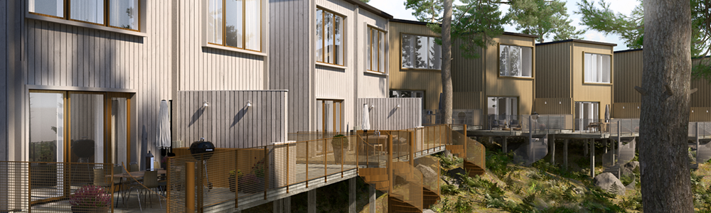 Mjöbäck Entreprenad AB/Västkuststugan AB tilldelas en markyta på cirka 8 175 kvm ljus BTA bostäder i form av radhus. Ett natur- och centrumnära radhuskvarter i två plan planeras för området. Radhusen ska utformas med hänsyn till befintlig topografi. Lågskalig, terränganpassad karaktär är viktiga aspekter. Bolagets anbud: 8 000 kr/kvadratmeter per ljus BTA (bruttoarea ovan mark) för bostad.