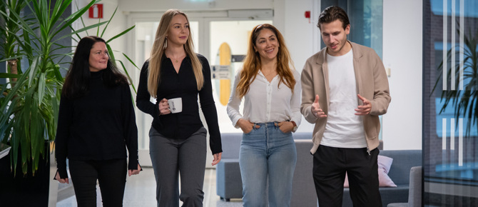 Bilden: Sofie Hofvander, Filippa Kanka, Minou Bayram och Adrian Lillgård, kundrådgivare på Stadsbyggnadsservice.