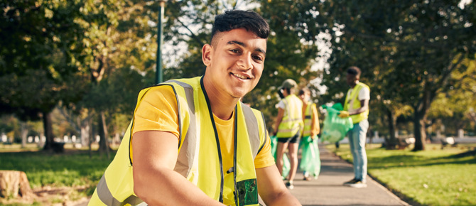 Foto: Ungdomar som plockar skräp på gator och i naturen