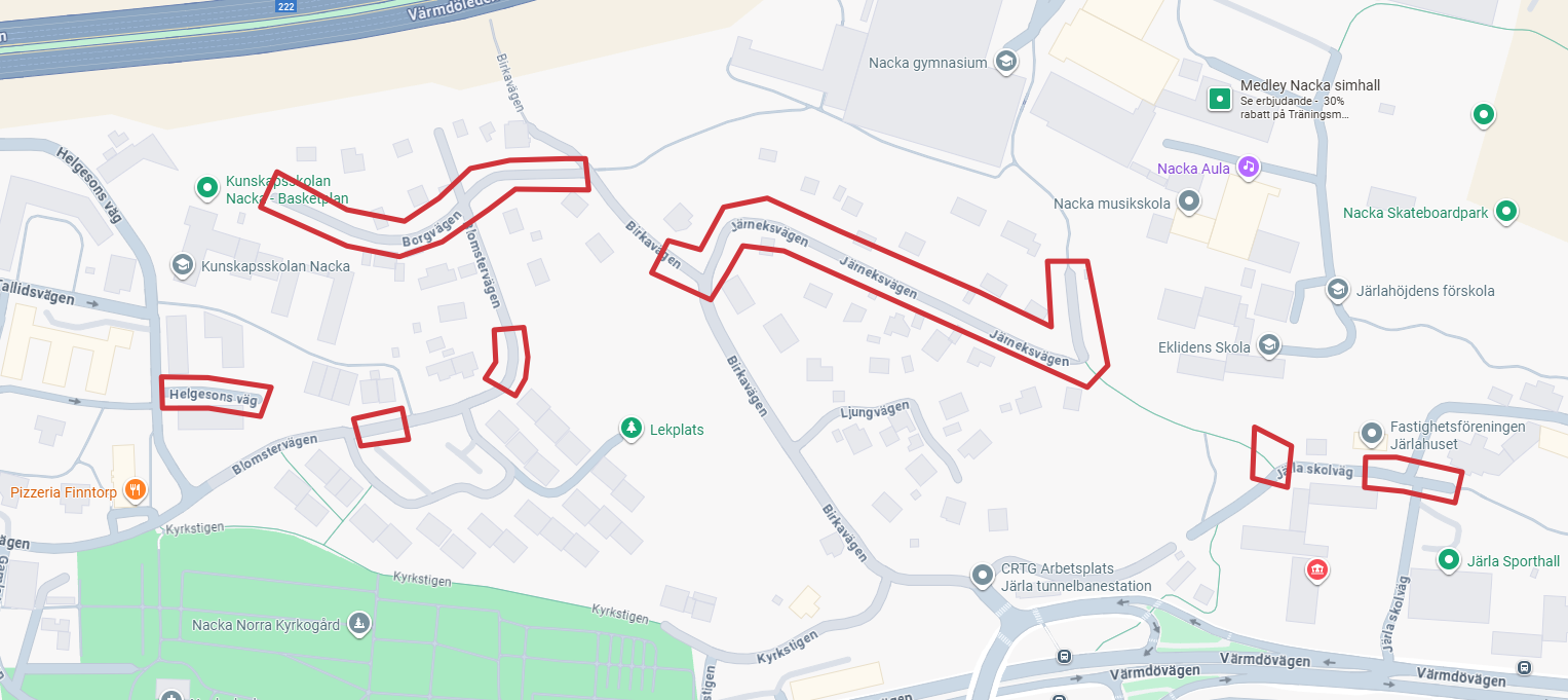 Vägar in och ut från Järlahöjden är via Järla skolväg eller Blomstervägen. Observera att båda dessa vägar är inte alltid öppna samtidigt.