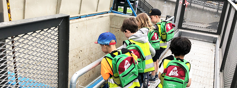 För att lära sig ännu mer om avfall bokade förskolan ett studiebesök på Älta kretsloppscentral. Under besöket fick de lära sig mer om hur man ska sortera sitt avfall, varför man ska göra det och vad som händer med det sedan. Besöket avslutades med en sorteringsövning där barnen visade att de är riktiga kretsloppshjältar som har bra koll på hur man ska sortera.