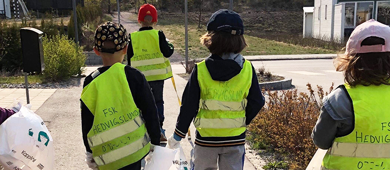 Förskolan Hedvigslund har varit med i den nationella skräpplockarkampanjen Vi Håller Rent och gjort en viktig insats genom att plocka skräp runt sin förskola Första steget blev att städa vid busshållplatsen där vi sett att flera skräpar ner, berättar Marie Hörnell som arbetar på förskolan.