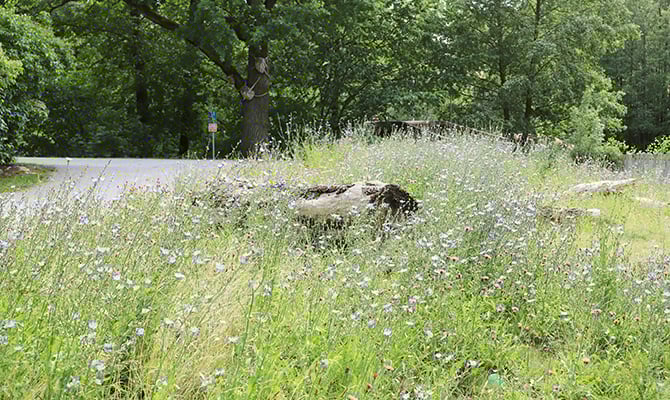 Kommunen sår nu allt fler grönytor med ängsblomster som blommar vid olika tider på året, så att insekter kan hitta mat under hela årets varma säsong. I ängsfröblandningen finns fleråriga ängsväxter som liten blåklocka, gulmåra och ängsvädd, men också ettåriga åkerogräs som blåklint, vallmo och klätt. Åkerogräsen har såtts eftersom de blommar redan första året i väntan på att de fleråriga ängsblommorna ska komma igång.