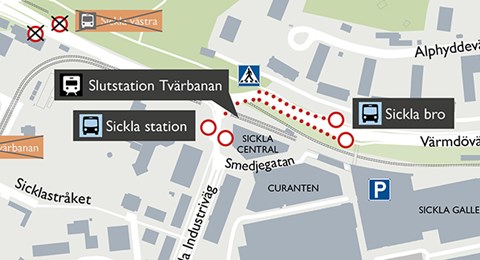 Den 14 december återgår Tvärbanan till sin ordinarie slutstation vid Sickla. Samtidigt öppnas också Sickla industriväg upp för fordonstrafik natten mellan den 13 och 14 december. Det här är vad som gäller: