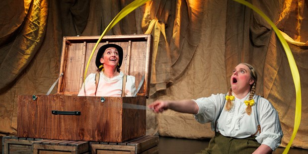 Välkommen till Mittiprickteaterns föreställning Vågar jag? Med inslag av musik och mycket humor berättar två akrobatiska figurer om hur det kan vara att vara blyg eller att vara oblyg.