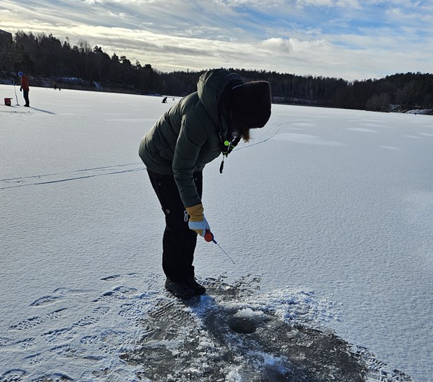Prova på vinterfiske på Ältasjön.