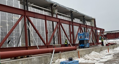 Just nu byggs Nacka bollhall ut med fler läktarplatser och ett nytt café. En natt i förra veckan, när de flesta av oss låg och sov, levererades en av de största delarna i projektet, en jättebalk på totalt 42 meter som ska hålla uppe taket ovanför den nya läktaren.