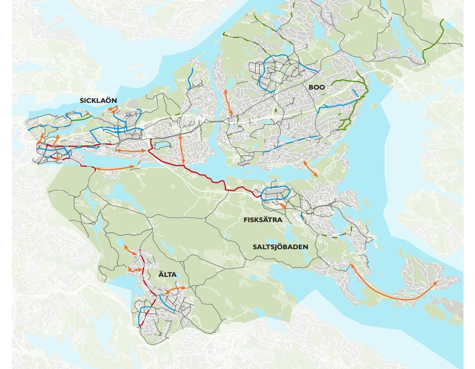 - Stärka förbindelsen mellan de regionala stråken genom Saltsjö-Duvnäs.