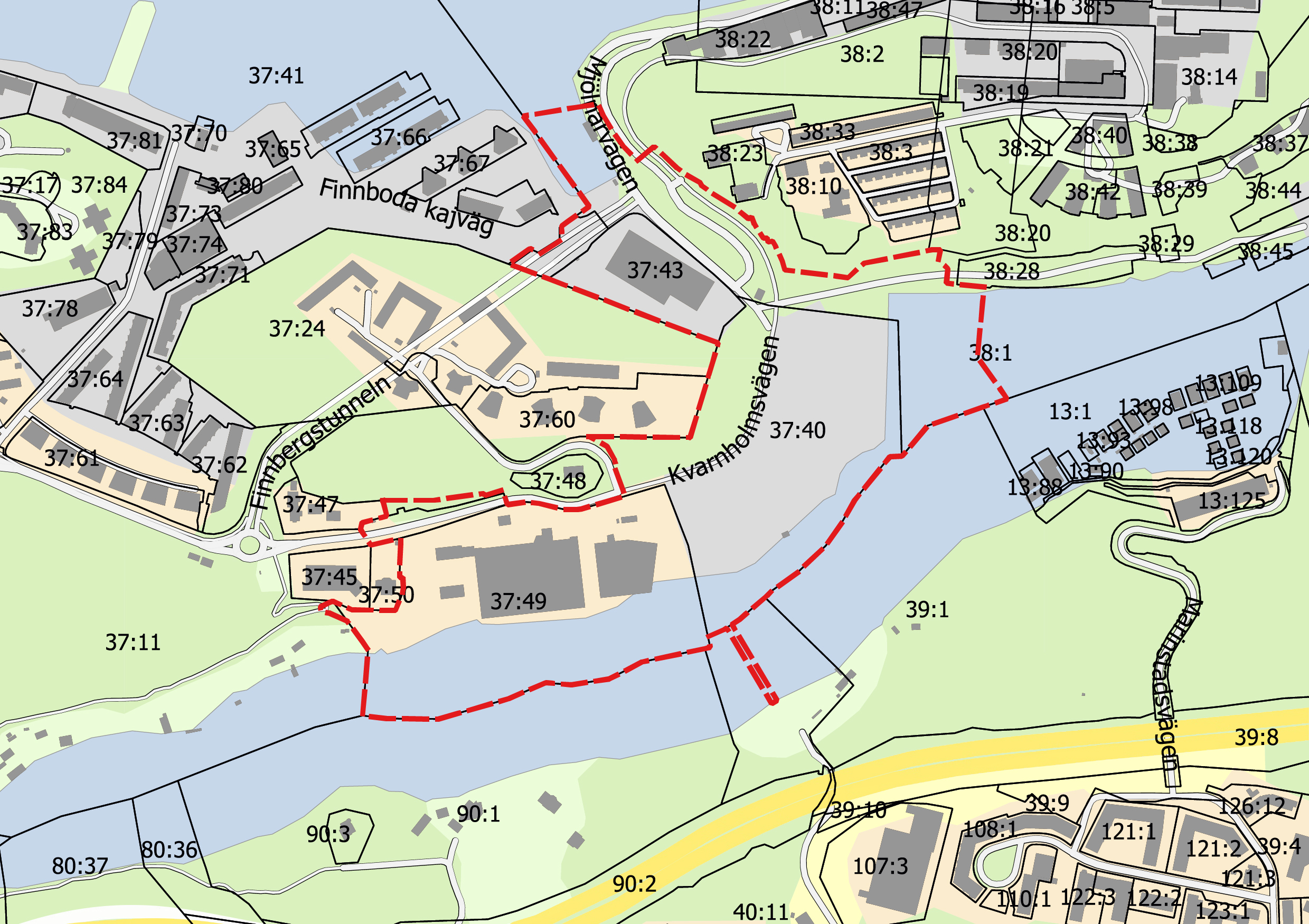 Planområdet omfattar delar av Finnberget samt dalgången mellan Kvarnholmen och Finnberget i det tidigare Hästholmssundet, samt kafferosteriet där Operan och Dramaten idag har sina ateljéer och dekorverkstäder. Tidigare industrier i planområdet har gjort att både mark och sediment på Svindersvikens botten är kraftigt förorenade.