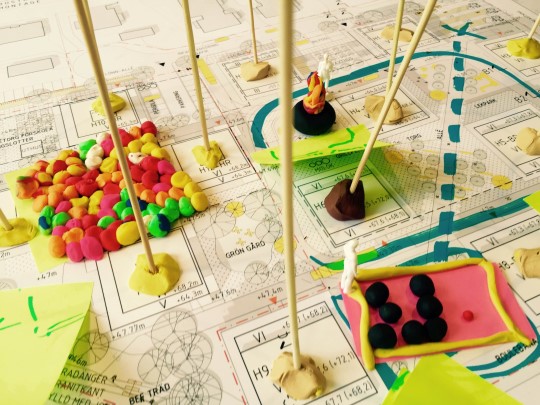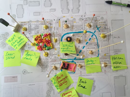 Tomtebloss/Lägereld nu snarast. Belysta ballonger eller liknande på stolpar eller i vajrar som markerar höjden på husen. En ballong i mitten av varje hus. Syftar till att skapa en vacker installation samt att lugna oroliga medborgare som inte kan se framför sig hur höga husen skall bli (föreställer sig värre än det är).