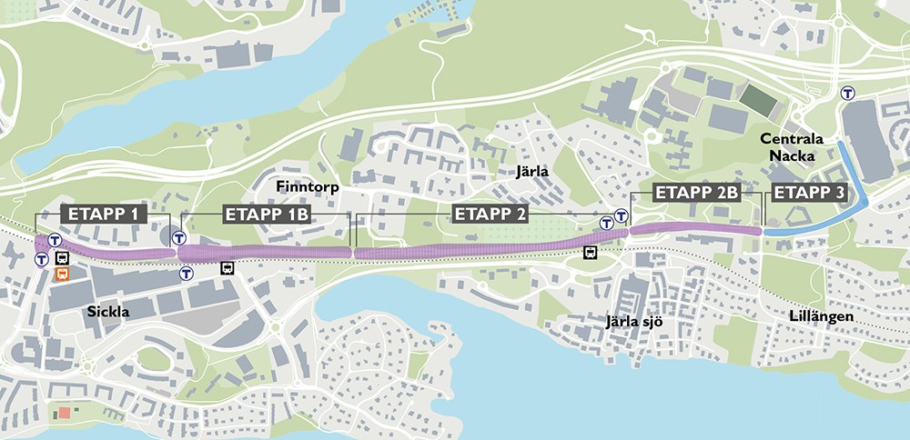– Samtidigt håller vi på att planera hur vi kan genomföra den näst sista etappen, 1b, Alphyddan - Finntorp, på bästa sätt. Det kan upplevas som onaturligt att vi bygger i en annan ordning än siffrorna, men det beror på att vi måste synkronisera med andra projekt i området, som till exempel tunnelbanebygget och Sickla stationshus, säger hon.