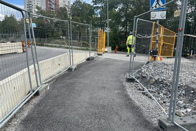 Foto: Den tillfälliga passagen mellan Finntorp och Kyrkviken