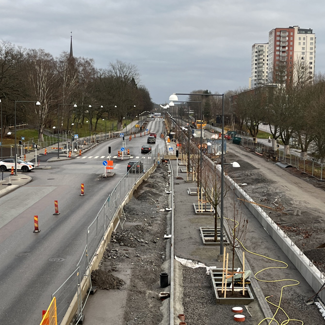 Just nu spirar ett grönt arbete längs Värmdövägen. Totalt handlar det om cirka 100 träd i olika storlekar och med varierande arter, som kommer att skapa en dynamisk och hållbar miljö längs vägen.