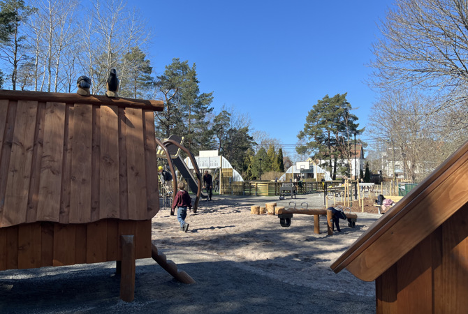 Här möts anlagd park och hällmarkstallskog – inte som motsatser, utan som delar av en helhet. Vi skapar en plats där lek, rörelse och lugn samspelar med naturupplevelser, träd och terräng.