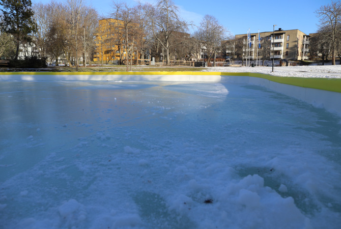 Tack vare de senaste dagarnas minusgrader är isen tillräckligt tjock, åkbar och rinken är tillgänglig för skridskoåkning dygnet runt.