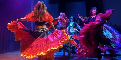 Den orientaliska dansen karaktäriseras av rullande höfter och färgstarka tyger.