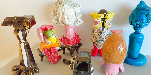 Lena Flodman ställer ut skulpturer bland kulturhistoriska föremål på Nacka hembygdsumeum.