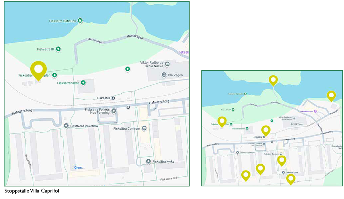 Här slutar vandringen i Fisksätra. Gå gärna våra andra vandringar i Boo, Saltsjöbaden, Älta Finnboda och längs Nacka ström.