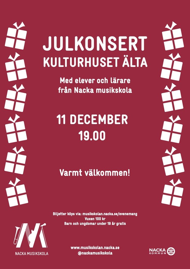 Nacka musikskola bjuder in till Julkonsert med elever och lärare från Ältaområdet