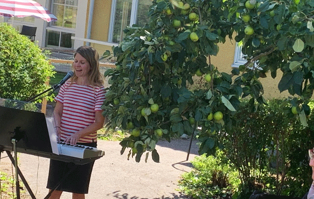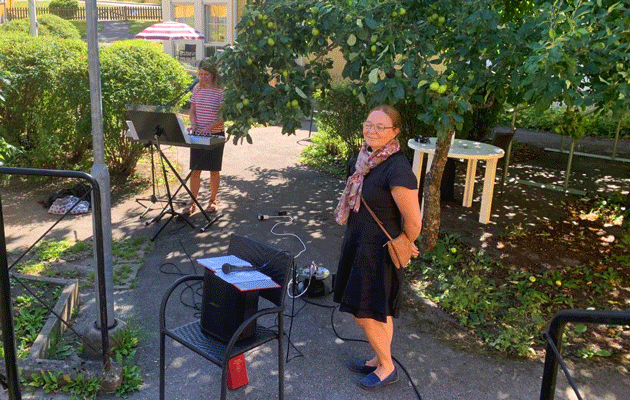Det var en varm och solig dag då vi fick besök av Svenska kyrkan, så andakten hölls i sin helhet ute i vår trädgård. Naturen gav en stämningfull inramning åt de vackra psalmerna och orden ur Bibeln.