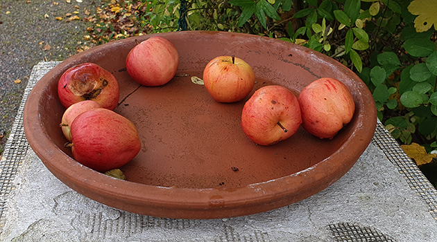 Våra trevliga grannar bjuder på äpplen vid sin grind. Det är väldigt uppskattat och vi äter gärna ett äpple på vägen.