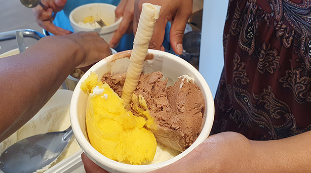 Det var inte bara god glass. Vi fick en spontan musikunderhållning också. Lite rockigare, 50-60-talsinspirerad musik.