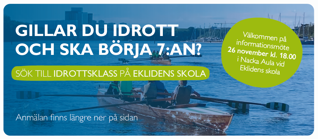 Information om antagning och idrottsklasser sker i Nacka aula den 26 november kl. 18.00 -19.30.