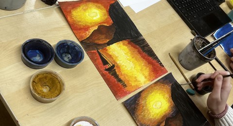 Årskurs åtta har utforskat en uppgift inom måleri på temat Dag och Natt.